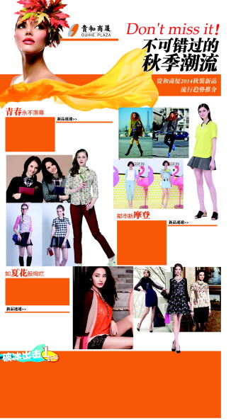 过了立秋,就算还有“秋老虎”,早晚的凉意也提醒着大家要准备秋装了,想知道今年秋季流行哪些元素吗?作为时尚潮人的你一定要先做好功课呦!本期贵和商厦为大家抢先分享2014年的新款秋装,让你感受秋季的时尚新魅力,快来先睹为快吧。