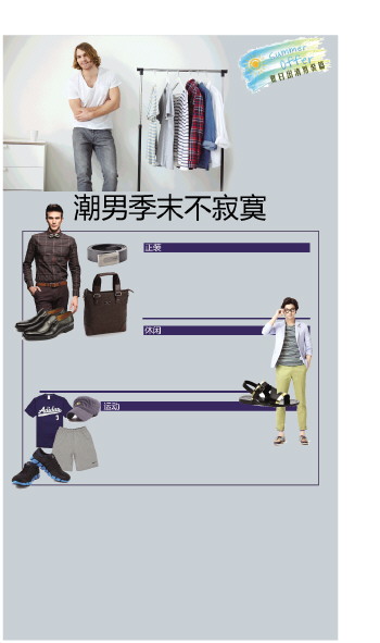 Party场合众多的夏季是无数男性表达自我、张扬个性的美丽时节,2014的夏季休闲装中,长袖衬衫的印花、条纹、格纹的混搭,让这个夏季的休闲男装清爽又不失活跃的格调。让男装庄重优雅的那一面完全改变。