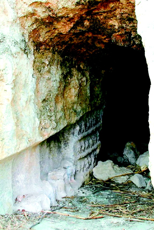 老虎洞向北崖壁上石窟造像趺坐遗存的洞窟。