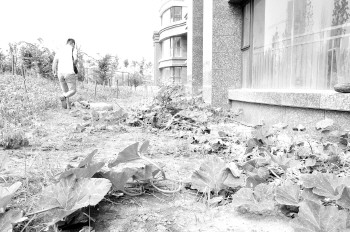 居民楼前匍匐着大片南瓜藤。本报记者 公素云 摄