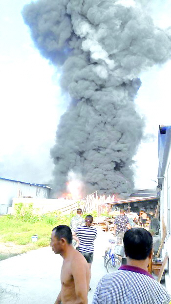 8月14日早上6点左右,莱阳市五龙南路一家厂房突发大火,浓烟滚滚。据了解,这是一家生产化工原料的私人厂房,占地有三四亩。