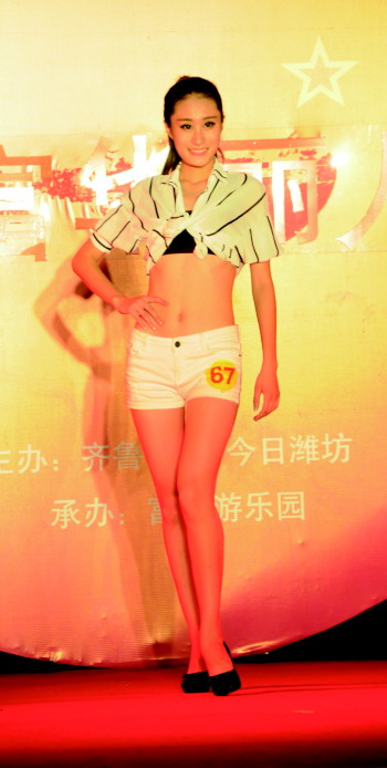 14日晚上天气温和,温度适宜,10名美丽的潍坊姑娘来到富华游乐园参加第二周第三场日赛。比赛开始以前,姑娘们早就画好美丽的面妆,穿上鲜艳的服饰,在台下耐心地等待着比赛开始,还没上台,她们的美丽就成为广场的焦点。