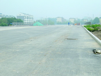 14日上午9时许,记者沿清平路与卧龙西街路口向东走发现,横向宽约20余米的道路已经有车辆通行,道路两侧电线杆所在的路面相对低于主干道几公分的高度,由于通路不久,路面上还没有进行路面标识油漆喷刷。