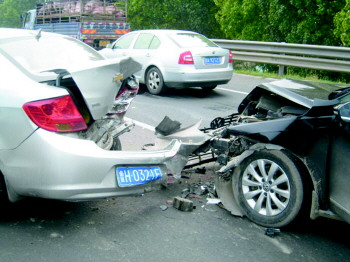 路政人员说,从事故现场情况看,四辆追尾轿车的顺序依次为:第一辆冀A牌照白色轿车、第二辆鲁L牌照银色轿车、第三辆鲁H牌照银色轿车和第四辆冀T牌照黑色轿车。“受伤”相对较轻的,是最前面那辆白色轿车,它的尾部与后面的银色轿车相撞力度不大,只是轻微变形。第三辆银色轿车和第四辆黑色轿车受损最严重,银色轿车的后保险杠被撞得掉了下来,盖子变形朝上翻开着,零件散落了一地。而那辆黑色轿车的前保险杠同样被撞得“散了架”,整个车头部分被撞得破损了一半,前引擎盖卷了起来,里面的主要部件有些变形,车辆已经不能正常驾驶了。