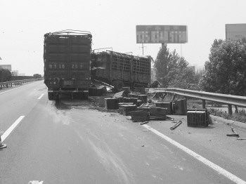14日上午10时40分许,京台高速济南方向385公里处两车发生追尾,致使多人被困。据了解,一辆满载蜂箱的车辆停在应急车道换轮胎,被后面一辆解放运输车追尾,蜂箱散落一地。