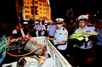 14日晚10点,在江西路与南京路路口,城管执法人员查处一处非法烧烤摊。据了解,该烧烤摊名气较大食客较多,每晚10点出摊,一直持续营业到凌晨2点多,噪音、烤烟的污染对周边居民影响较大。当晚执法人员依法暂扣了该摊位的烧烤工具,要求摊主于次日前往执法中队接受处罚。