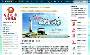 □2014年1月16日,齐鲁晚报《今日青岛》腾讯官方微博注册,固定推送每天《今日青岛》上版新闻,不定时推出微博活动,如转发活动微博赠实物礼品等。