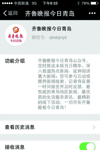 □2014年2月24日,齐鲁晚报今日青岛官方微信(微信号:qlwbjrqd)推送第一条信息,可同时实现微活动、微会员、微全景、微会议、微调研等多种信息发布、传播、互动效果,内容丰富全面、呈现方式多元。