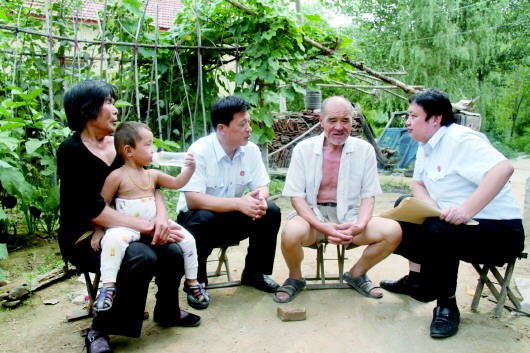 “为民、务实、清廉”群众路线教育实践活动中,惠民县法院积极推行巡回审判、上门立案等便民服务,为老、弱、病、残等特殊当事人提供依法维权的绿色通道。图为8月14日,惠民县法院两名法官走进农家院落,成功调解了一起赡养纠纷案件。