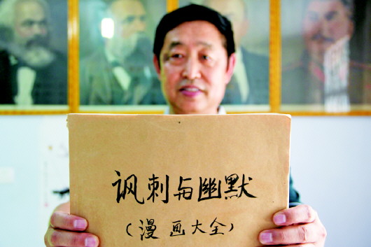 刘荣焕在展示收藏的的廉政漫画集。