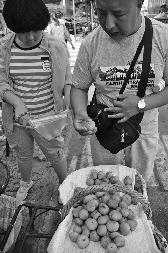 14日,海港客运站,一果农在售卖秋季无花果。目前秋果每斤20元,仍受到不少游客青睐。