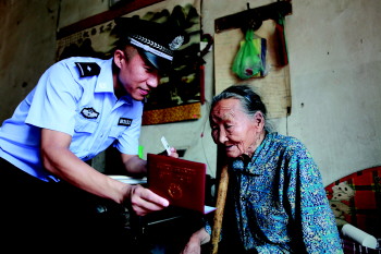民警把更改后的新身份证和户口本送到老人手中。 本报通讯员 车金 摄