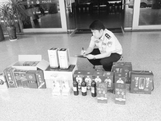 民警对李某偷盗的酒进行登记。 本报通讯员 吴敬安 摄