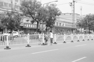 14日,记者在文化西路发现,每隔一段距离,护栏中间的柱子就被人为的撤掉两至三根,总有市民为了图省事,选择弯腰从护栏下钻过去,有的市民甚至带着孩子“抄近路”,来来往往的车辆很多,让人看了不禁为之捏了一把汗。 本报记者 贾晓雪 摄影报道