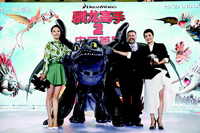 本报讯(记者 倪自放) 美国梦工场动画大片《驯龙高手2》近日在上海举行中国首映式,导演德布罗斯和中文配音演员蒋雯丽、白百何到场与媒体交流。作为暑期档唯一一部IMAX3D动画大片,《驯龙高手2》被赞技术让人“身临其境”。两位配音演员蒋雯丽和白百何则不约而同地说,“是为了让儿子崇拜才决定参加这部电影配音的。”