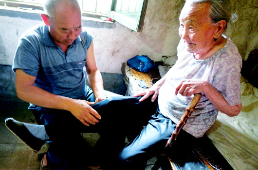 杨立珍腿肚子抽筋的时候总会叫儿子帮她揉揉。