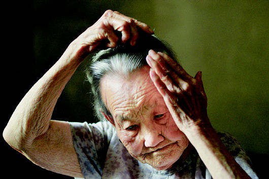 杨立珍梳起头发来很仔细。