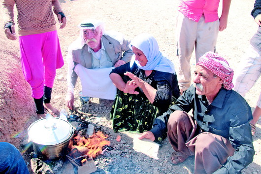 8月15日,在伊拉克北部库尔德自治区的一处难民营,几名雅兹迪教徒在做饭。 新华社发