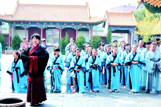 本报8月16日讯(记者 王若松 实习生 刘姝辰) 拜孔礼、诵经典、领证书,16日上午,经过为期一周的学习,尼山书院第二届国学体验夏令营正式结束啦,身穿蓝色汉服的小学员们领取了结业证书,并现场进行了学业成果展示。