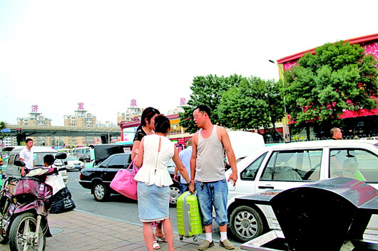 ◥记者近日调查发现,在济南的火车站、汽车站、各大商圈随处可见黑出租,存在乱要价、计价器做手脚、私家车揽客等乱象。与此同时,负责济南主城区打击黑车工作的人员只有15人,执法力量不足、取证难等因素让黑出租更显猖獗。 本报记者 任磊磊 摄