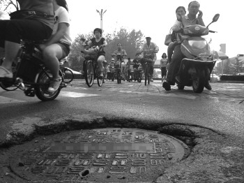 “现在骑电动车的这么多,按照正常速度行驶过去,颠得可不轻!”说起下沉的井盖,市民张女士说,现在每天上下班,骑电动车和自行车是一个速度,不敢快了,尤其是高峰期,井盖太多、坑太多。骑过去吧太颠了,害怕摔倒,绕过去吧,又容易和后面的人撞上。