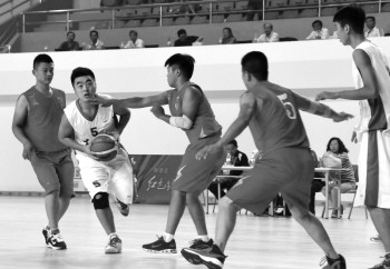 济宁聋人篮球队的运动员突破重围。 本报记者 张晓科 摄