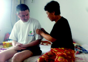 张桂兰正给赵虎做按摩。 本报记者 孙淑玉 摄