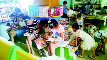 暑假期间,书店成了众多中小学生的好去处。8月16日乐陵市新华书店内挤满了看书的中小学生。