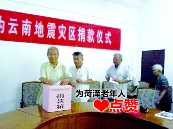 虽远在千里,鲁甸发生的6.5级地震牵动着菏泽老人们的心。15日上午,菏泽银龄爱心志愿团、老年保健操协会自发组织为云南地震灾区进行捐款,现场共捐款8919元。老人们年龄都在六七十岁以上,捐款少则十元二十元多则数百元,“老人们都是将平常买菜钱攒下来捐出去,虽然不多,但也是一份爱心。”71岁的老人宋守志说,捐款将上交红十字会,希望灾区人民能够渡过难关,重建家园。
