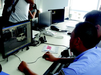 民警对自动抓拍的违法图像进行筛选。 周衍鹏 摄