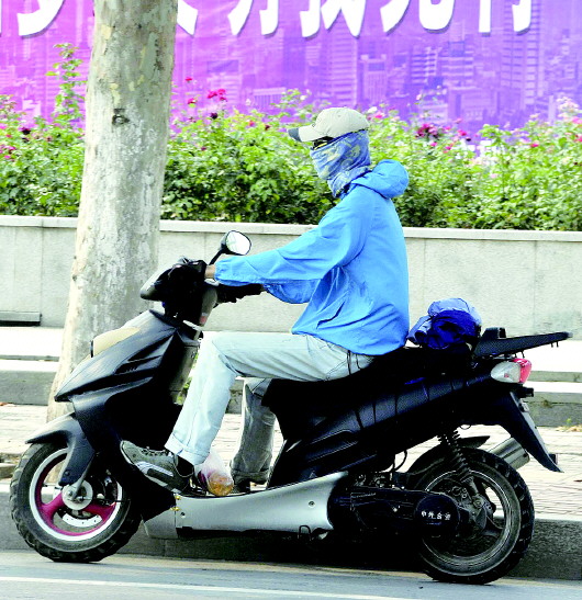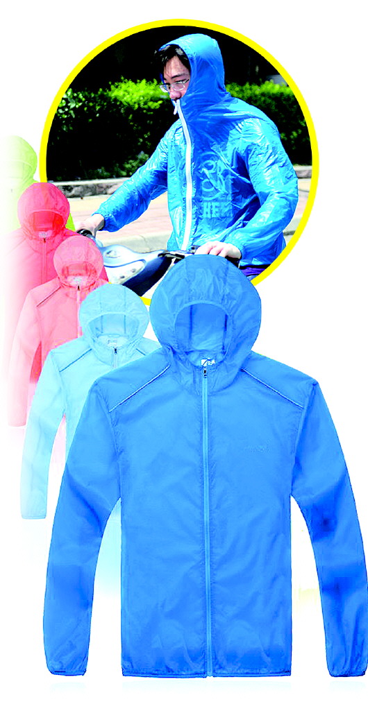 色彩鲜艳的防晒服连男士都喜欢。 本报记者 王媛 摄
