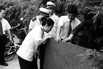 执法人员检查香港大厦二次供水蓄水池检查。本报记者 李倩 摄