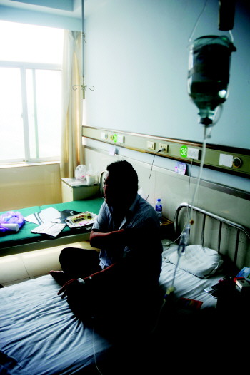 8月19日,自称被打伤的汪洪涛(化名)在陵县人民医院接受治疗。 本报记者 马志勇 摄