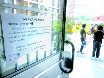 小区3号楼门口张贴的办理天然气开通手续通知。 本报记者 赵念东 摄