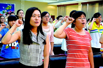 “用智慧开启智慧,用爱心托起爱心,平等地对待每一位学生,为他们构筑迈向成功的基座……”19日上午,在牡丹区新教师岗前培训班上,280名新教师庄严宣誓,表示努力做一名合格的人民教师。