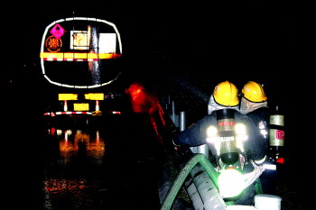 17日2时许,济菏高速郓城段一辆满载酚油的危化品罐车发生轮胎自燃事故,酚油罐车整个车身被大火包围,冒着滚滚浓烟,酚油随时有泄漏的危险。郓城消防大队金河中队消防官兵紧急赶到现场,一边协助高速交警警戒,一边利用水枪对火势进行控制。经过约15分钟的努力,明火被彻底扑灭,避免了一起灾难。