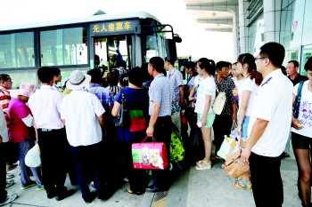 今年暑运已接近尾声,将于31日结束。“按照暑运的规律,下周将迎来客流高峰。”西海岸汽车总站副总经理张彬介绍,随着各学校的陆续开学,西海岸汽车总站的客流也随之上升,主要以学生返校和外出旅游返程流为主。图为19日,在西海岸汽车总站,旅客准备上车。