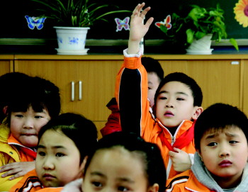一名小学生在开学第一堂课上积极发言。(资料片) 本报记者 姜文洁 摄