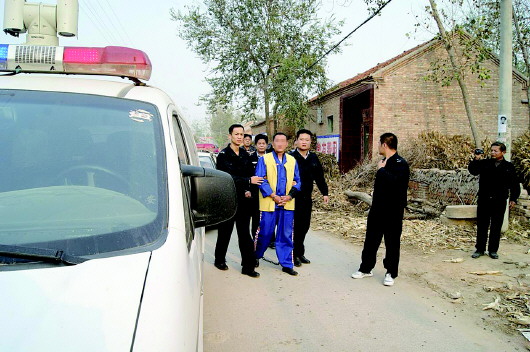 2013年10月23日,郓城警方押解赵某指认现场。 本报通讯员 宋明磊 摄