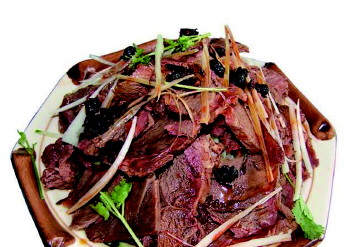 蓬莱卤驴肉由南门外黄开基首创,相传3代经营,享有“天上龙肉、地下驴肉、蓬莱卤驴肉、天下无敌手”之美誉。此菜特点是:肉色红亮,溢香扑鼻,鲜嫩爽口,为下酒之佳肴,在蓬莱市内各大餐馆均可品尝。