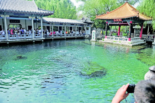 8月20日,趵突泉水位勉强维持在28.25米,比黄色警戒水位仅高了10厘米。与一年前的“辉煌”相比,显得有些落寞。2013年的8月20日,趵突泉水位达到29.95米,是全年的最高值。