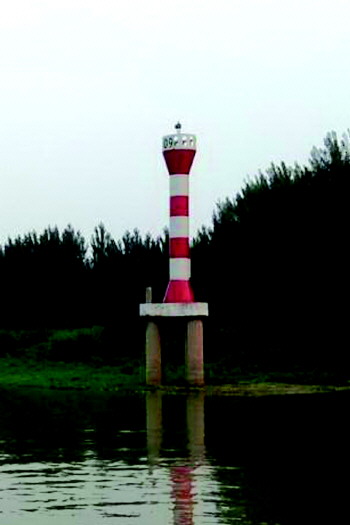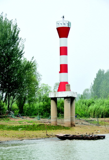 西港9号航标根部已经裸露出来(资料图)。本报记者 李岩松 摄
