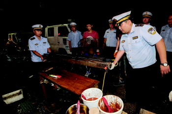20日晚7点至12点,市南城管执法局联合公安,组织160余名城管执法人员,十余名公安民警,对露天烧烤行为展开集中整治行动。当晚8点,记者跟随执法人员来到火车站周边,沿河南路自南向北巡查。在河南路与北京路路口,街道两旁有三四家小饭店,这些饭店全都在店外的人行道上摆了多张桌椅,还有人在烧烤炉前忙碌。由于道路较窄,几张烧烤炉冒起的青烟挡住了路过司机的视线,过往车辆不得不减速慢行。执法人员了解情况后,将这些饭店占路烧烤所用的工具及桌椅全部收缴,其中有个别摊主情绪激动,冲到执法车前想将工具抢回,执法人员对其进行了阻止并予以警告。