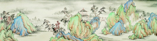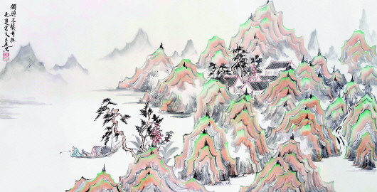 作为获得博士学位并有博士后研究经历的王进显然对中国古代绘画的发展有着深入的研究,于此中将“文人雅集”作为其探寻古代艺术世界的一个独特视角,并与自身创作实践合为双璧,“雅集”成为王进绘画创作的一个重要母题。今天我们看到王进的作品具有一种思古之幽情与当代之气息水乳交融的味道,林壑优美中的文人雅士与文秀清雅的浅绛风格在物欲充斥的当下犹如清风一阵,荡涤尘埃,不禁让人反思时风之殇。从这一角度讲,当代艺术所强调的介入性反思价值亦在王进的画中呈现出来。“雅集”是一种态度,有人看到的是逃避,有人看到的是抵制,而这一切全赖于读者之于画面的感受。