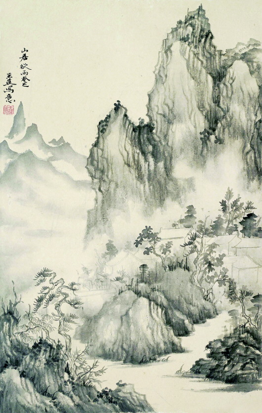 石涛在描述水墨画发展进程时曾以文喻画“上古之画迹简而意淡,如汉魏六朝之句然;中古之画如晚唐之句,到元则如阮籍、王粲矣,倪黄辈如口诵陶潜之句”,这段文人味道十足的话其实也道出了一个审美风格流变的史实:山水画的设色自从六朝萌芽以来,经历了由隋唐的“大青绿”逐渐向两宋的“小青绿”再至元明“浅绛”山水画的嬗变。此种渐进实则蕴涵着深刻的民族审美趣尚的选择,即淡雅写意文人画连带雅致的文人生活作为文人精神之表征,深深贯注于国人集体无意识的审美之中。王进的山水画正是在这个角度,在喧哗一片的当代,带人走进一个文人雅集的清净世界。面对其作品时,不禁会生出“披图幽对,坐究四荒,不违天励之藂,独应无人之野”般的共鸣。