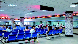 ▲20日上午10点,威海市房地产交易大厅内,往日熙熙攘攘的场面,如今办事市民却寥寥可数。 记者 王帅 摄
