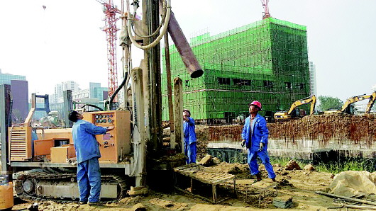 据介绍,强度风化花岗岩硬度小,与普通土层一样在遇到水流和空气时都会塌陷。打井前期往往遇到这种地质,需要护壁管做支撑,保证钻井设备顺利掘进。“前期因为加固工作往往成为打井作业中的难点,会放慢打井进程。”打井队王强队长说。记者在现场看到,在遭遇强度风化花岗岩阶段,工人们需要将每根长约3米的护壁管焊接后放到地下,焊接一根护壁管往往需要20多分钟。管道很沉,需要借助打井设备才能搬运到指定位置。