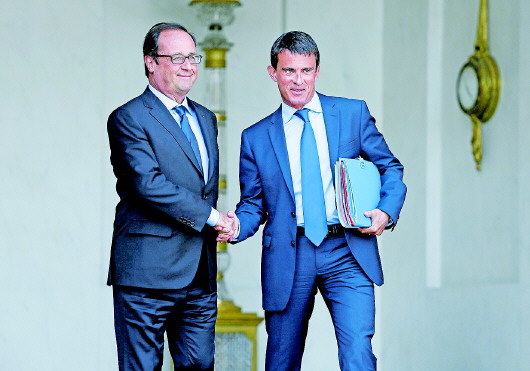 奥朗德(左)和总理瓦尔斯。 新华/法新