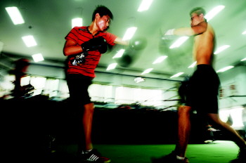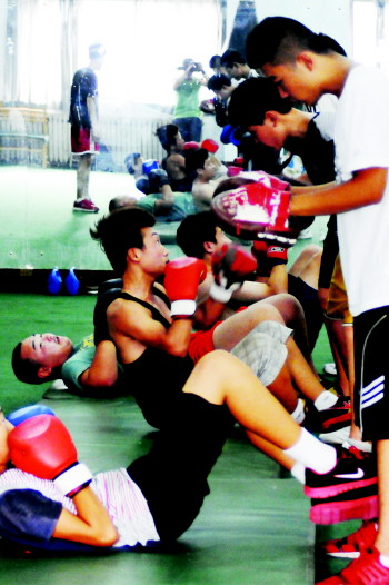 八月份,多数大学生正在享受轻松的假期,而在德州学院体育馆内却格外热闹,与冷清的校园形成了鲜明的对比。几乎整个暑假,体院的学生在此进行集训,喊叫声和器材的撞击声在闷热的场馆内回荡。拳击馆内有一群十六七岁的小队员打拼着自己的拳击梦,在低吼、挥拳、躲闪中汗水已浸湿衣襟,作为储备队员的他们也许明年就能出现在比赛的拳台上。
