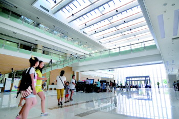 三楼的公共电子阅览室和市民学习中心也深受不少读者钟爱。据技术部负责人王光瑞介绍,暑假期间,市民学习中心每天都有不同类型的电影放映,读者可凭借读者证或身份证观看,“同时,也可凭读者证或身份证到公共电子阅览室免费登记上机,可浏览电子期刊、电子图书、访问市图书馆数据库、获取电子资源、享受网上参考咨询服务等,每证每天累计上网时间不超过2小时。”